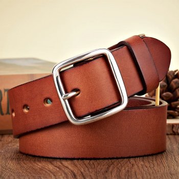 3.8CM Men’s Vintage Cowskin Leather Belt with Anti-Allergy Stainless Steel Buckle