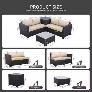 4-Piece Outdoor PE Wicker Patio Furniture Set with Storage Table and Cushions