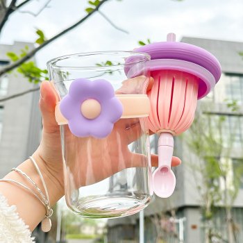 Flower Glass Cup with Lid, Straw, and Infuser
