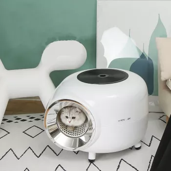 Fully Enclosed Round Cat Litter Box with Scoop – Record Player Style, for Pets Under 22lbs