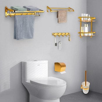 Gold Space Aluminum Bathroom Accessories Set with Towel Bar & Shelf