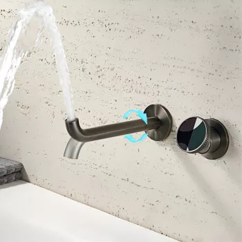 Gun Gray Brass Wall-Mounted Bathroom Faucet, Dual Control for Hot and Cold Water