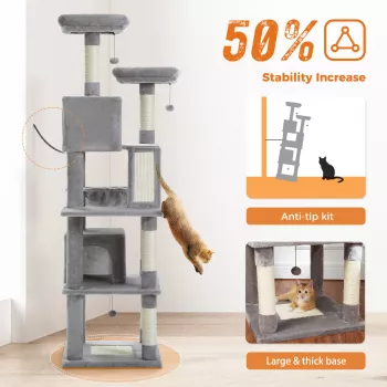 Large Multi-Level Cat Tree with Scratching Posts, Caves, and Perches for Indoor Cats